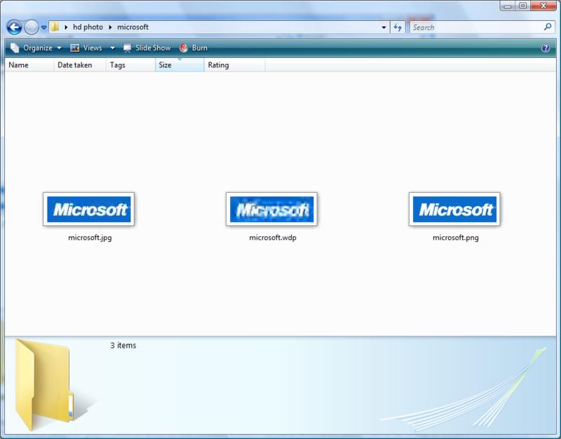 Emil Protalinski首先截取了一張Neowin網(wǎng)站的Logo,利用Photoshop分別保存為了JPG/PNG/WDP三種格式,所有選項均為默認設(shè)置。Emil Protalinski利用Vista自帶的Windows Photo Gallery程序打開了三張圖片進行比較,Emil Protalinski認為自己使用肉眼分辨不出三張圖片的差別。而在默認設(shè)置下,PNG、JPG和WDP三種文件格式的大小分別為38.6KB、34.4KB和36.6KB。