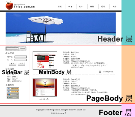 2、內(nèi)容部分又可分為側(cè)邊欄、主體內(nèi)容;