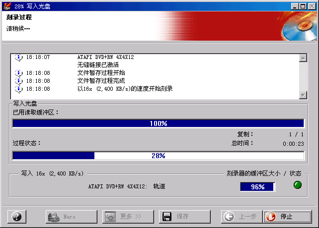 刻錄開始,建議在刻錄過程中不要用計(jì)算機(jī)做其他工作,屏幕保護(hù)最好關(guān)掉,或者時(shí)間設(shè)的長一些。