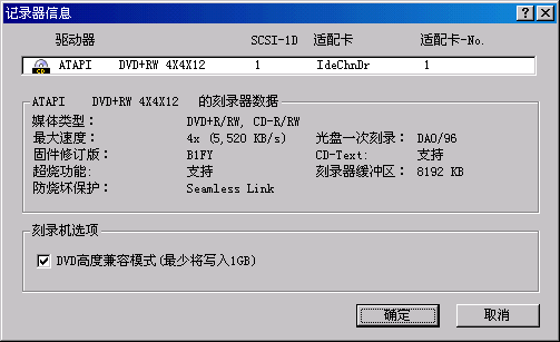 顯示了刻錄機(jī)的基本信息,我們看到Benq刻錄機(jī)帶有Seamless Link的防刻死。關(guān)掉這個(gè)窗口,我們點(diǎn)下一步開始刻錄: