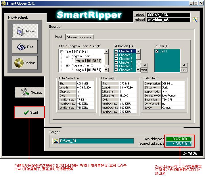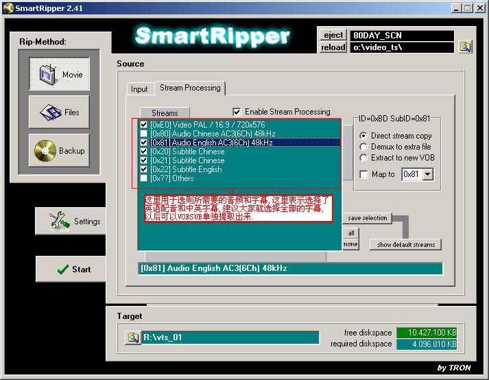 先將DVD拷進你的硬盤,由于DVD其自身所帶的加密性,直接復制里面的內(nèi)容是不行的,必須用一些專門的軟件來復制,這里我推薦一款好用的綠色軟件:SmartRippe 已經(jīng)上傳到附件中了