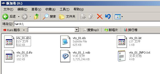 這時再檢查一下,文件夾內(nèi)所有文件必須要同名.也就是a.vob  a.idx  a.sub  a.ssa