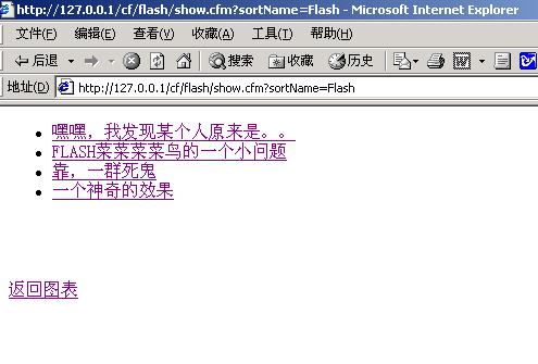 我現(xiàn)在點(diǎn)開(kāi)一個(gè)類(lèi)別例如我點(diǎn)FLASH。那么SORNAME=FLASH就會(huì)傳遞給SHWO.cfm網(wǎng)頁(yè),顯示會(huì)象下面這樣下面這樣顯示