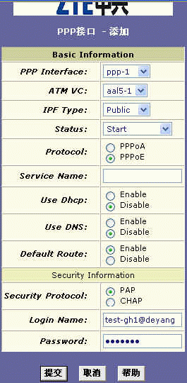 。點(diǎn)擊“添加”按鈕,在彈出的“PPP接口-添加”頁中填入正確的設(shè)置: