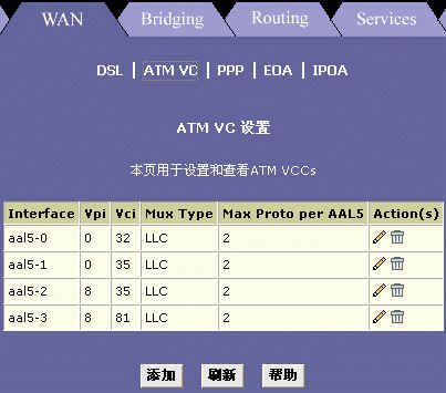 一、首先建立的是要用于當(dāng)前PPPoE連接的PVC通道即VPI/VCI。zte831的出廠配置已經(jīng)內(nèi)置了四個PVC通道。以下就針對筆者所在地的VPI/VCI為0/35這個通道來討論。