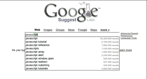 圖1-4. Google Suggest,早于Garrett的Ajax論文的利用了異步XML技術(shù)的應(yīng)用程序
