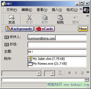 此病毒通過郵件傳播,附件有兩個(gè),一個(gè)是名為羅米歐的蠕蟲病毒,一個(gè)是名為朱麗葉的腳本病毒,當(dāng)用戶不小心觀看了病毒信件,整個(gè)電腦便會被這對“情侶”占據(jù)。