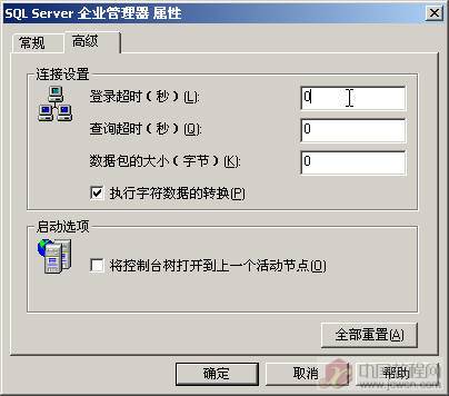 在屬性窗口中選擇“高級”選項卡,將“登錄超時”的數值設置為0。按照上面說的把遠程數據庫就已經連上了