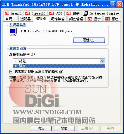 對于IBM筆記本電腦來說,其特有的電源管理軟件Battery MaxMiser可以調(diào)整筆記本電腦的屏幕刷新率,見下圖,IBM的獨家功能之一: