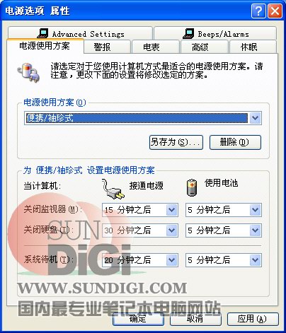 再有,很多用戶喜歡在筆記本電腦中使用屏幕保護程序,這種做法也許對CRT顯示屏還具有一定的保護作用,但對于使用電池供電的筆記本電腦而言,可以說基本上是沒什么用處的。而且現(xiàn)在的屏幕保護程序可以說是做的越來越花哨,在運行屏幕保護的時候系統(tǒng)負荷反而更大,耗電量自然也就隨之增大。因此,建議大家在離開電腦的時候可以選擇將LCD關閉,或者使用休眠功能,甚至是關閉電腦。IBM的用戶比較幸運,可以用FN+F3直接關閉屏幕:)。