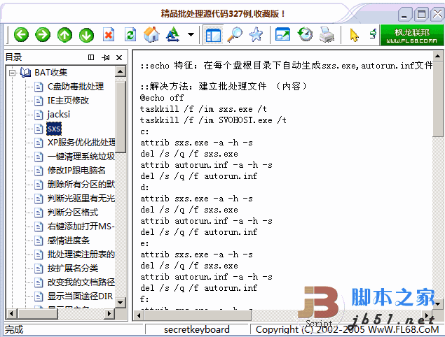 ☉ 本站提供的精品批處理源代碼327例 綠色收藏版資源來源互聯(lián)網(wǎng),版權(quán)歸該下載資源的合法擁有者所有。