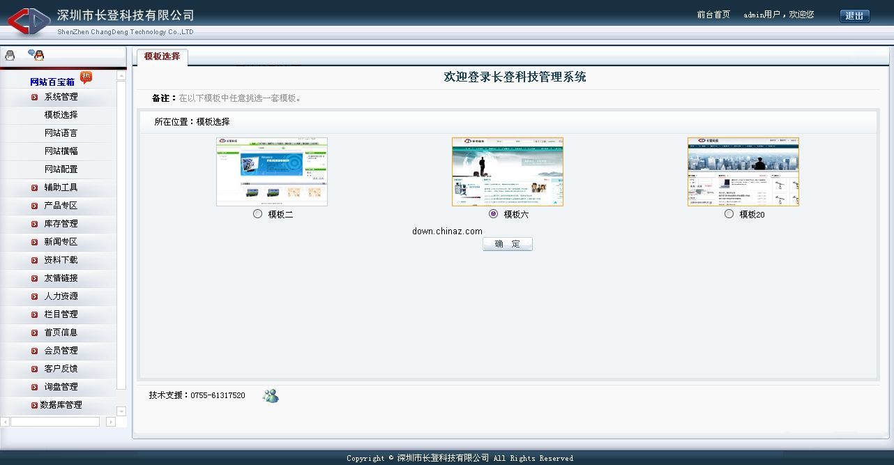 3、系統(tǒng)內(nèi)置三個(gè)網(wǎng)站模板,自由選擇切換風(fēng)格,也可以增加其它模板皮膚。