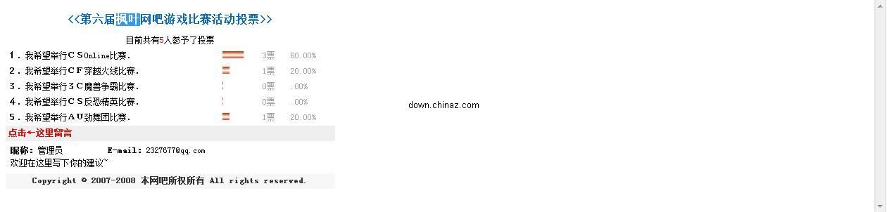 ☉ 本站提供的asp網吧投票系統(tǒng) 2009版 資源來源互聯網,版權歸該下載資源的合法擁有者所有。