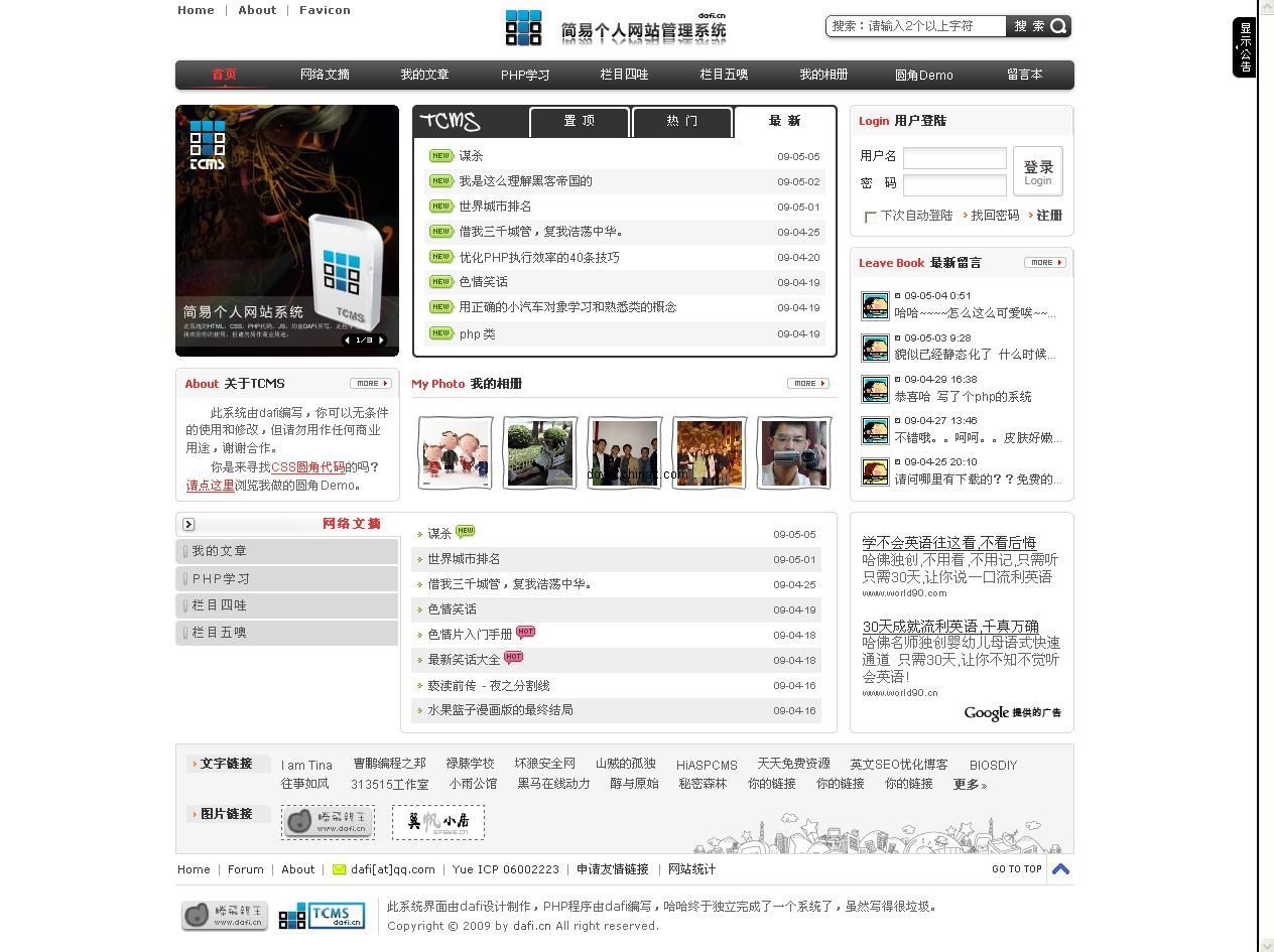 TCMS簡(jiǎn)易php個(gè)人網(wǎng)站系統(tǒng) v1.2 [正式版]