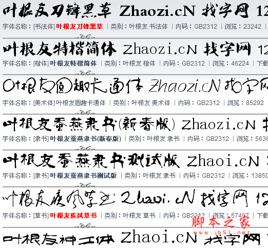葉根友書法字體全十九套2011元旦收藏版,這套比腳本之家以前發(fā)布的要全。