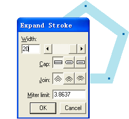選擇五邊形,執(zhí)行 modify-alter path-expand stroke .在對話框中輸入寬度值為 20 。