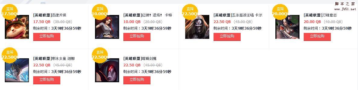 以上就是小編給大家?guī)淼?strong>LOL10月9到12日半價(jià)皮膚英雄購買網(wǎng)址介紹的全部內(nèi)容了,希望大家喜歡,祝大家游戲愉快!更多實(shí)用攻略,更多最新消息請繼續(xù)關(guān)注JB51!