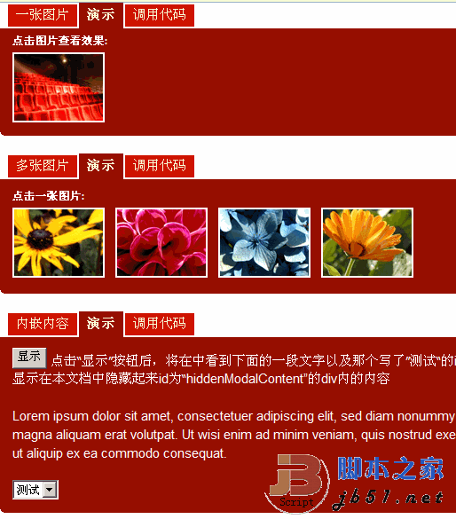 Tickbox 是一款基于 jQuery的圖片展示特效插件,原插件由國(guó)外開(kāi)發(fā),后經(jīng)legal翻譯,現(xiàn)提供最終版v3.1的下載,內(nèi)附有多個(gè)實(shí)例和調(diào)用方法,均由英文原版分離并翻譯。演示效果大致可以看一下codefans.net截圖,這個(gè)效果估計(jì)大家多見(jiàn)于一些設(shè)計(jì)精美的相冊(cè)當(dāng)中,當(dāng)我們點(diǎn)擊圖片縮略圖的時(shí)候,圖片會(huì)在當(dāng)前頁(yè)顯示大圖,點(diǎn)擊圖片可以關(guān)閉也可以跳轉(zhuǎn)到某個(gè)網(wǎng)址,整個(gè)示例頁(yè)面也是一個(gè)jQuery的使用示例,對(duì)學(xué)習(xí)jQuery相當(dāng)不錯(cuò)。