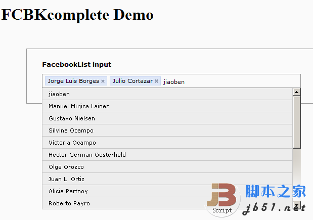 FCBKcomplete jQuery動(dòng)態(tài)輸入框提示插件