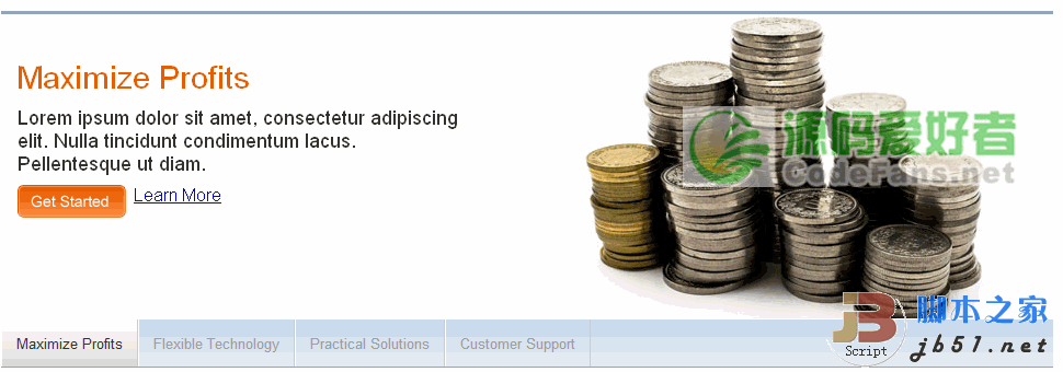 ☉ 本站提供的jQuery Tab選項卡 像Flash一樣動畫切換資源來源互聯(lián)網(wǎng),版權歸該下載資源的合法擁有者所有。