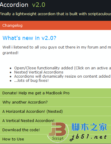 基于Prototype的手風琴菜單,層的展開與折疊代碼 Prototype / 255KB