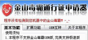 ☉ 本站提供的金山毒霸通行證申請器 V2.6 綠色版資源來源互聯(lián)網(wǎng),版權(quán)歸該下載資源的合法擁有者所有。