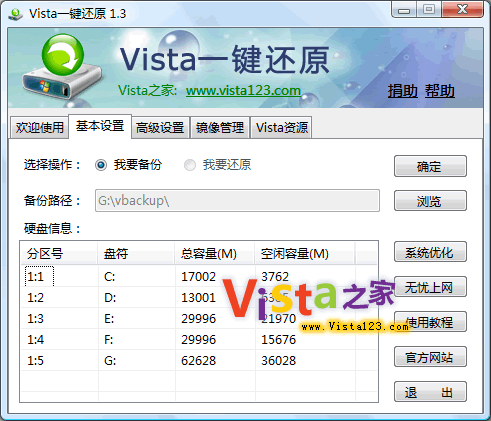 1、專業(yè):支持所有版本Vista操作系統(tǒng)(含雙系統(tǒng))進(jìn)行一鍵備份和一鍵還原