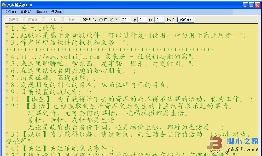 ☉ 本站提供的文本播放器 1.0 綠色版_非常享受地閱讀小說資源來源互聯(lián)網(wǎng),版權(quán)歸該下載資源的合法擁有者所有。