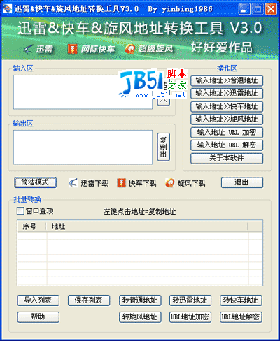 通用地址互轉(zhuǎn)器/迅雷/快車/QQ旋風(fēng)/HTTP下載地址轉(zhuǎn)換器 v1.0 綠色359KB / 10-18